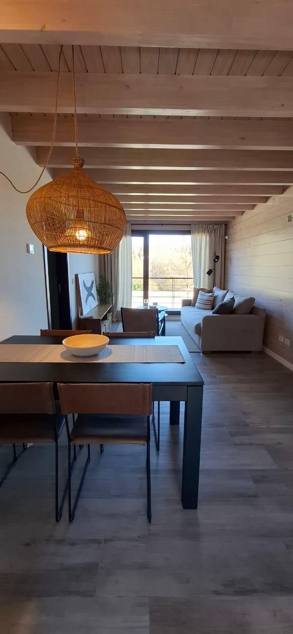 Un monoambiente que gracias a su distribución y equipamiento genera espacios bien delimitados: dormitorio (cama doble), cocina, baño completo y placard. El deck exterior en verano es un ambiente mas.