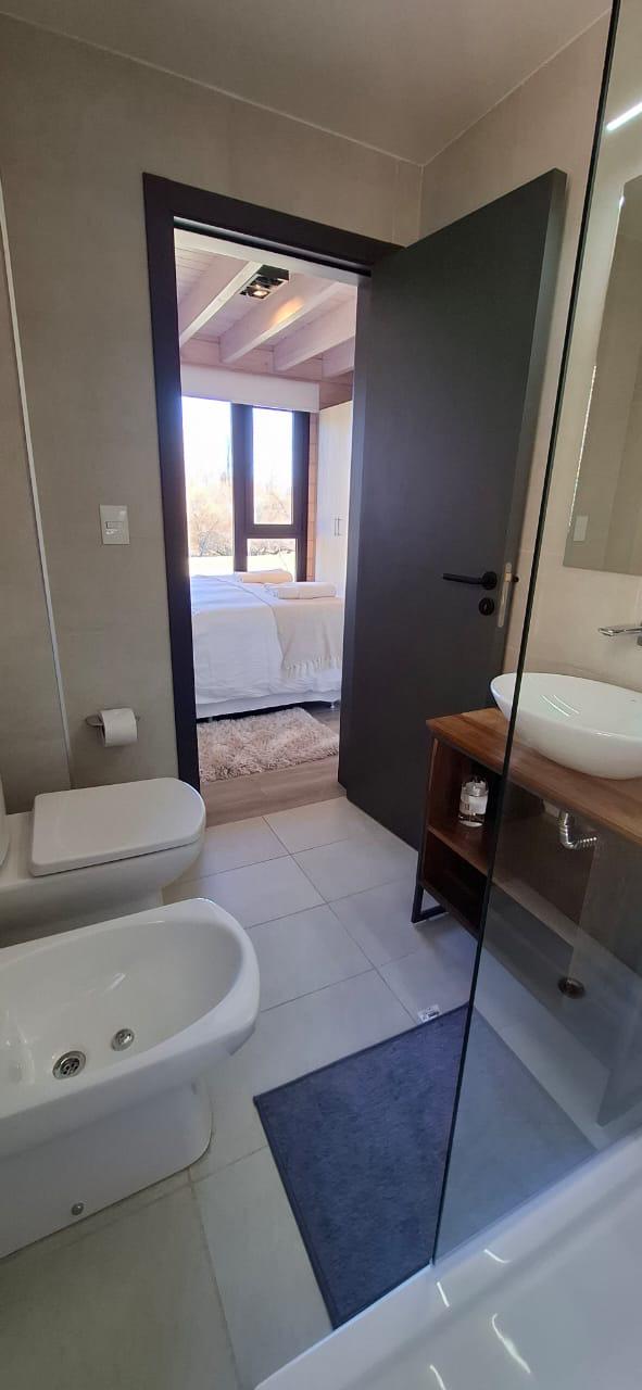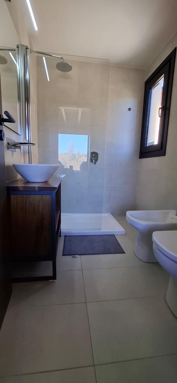 Confortable casa de estilo de montaña patagonica, revestida en piedra y madera en su interior los espacios son rusticos, acogedores y calidos.