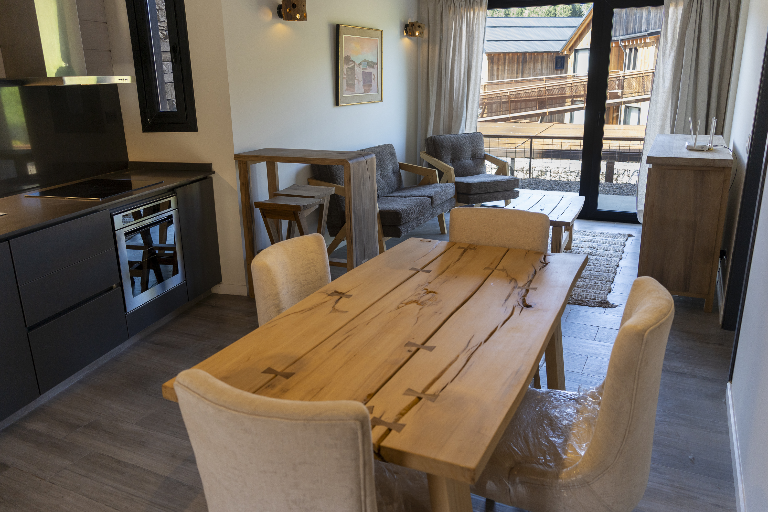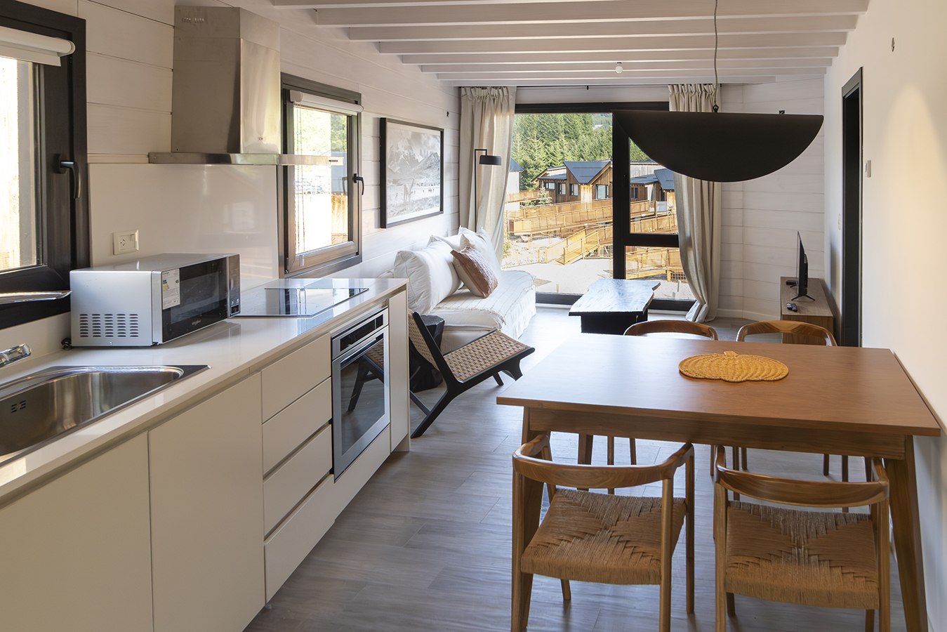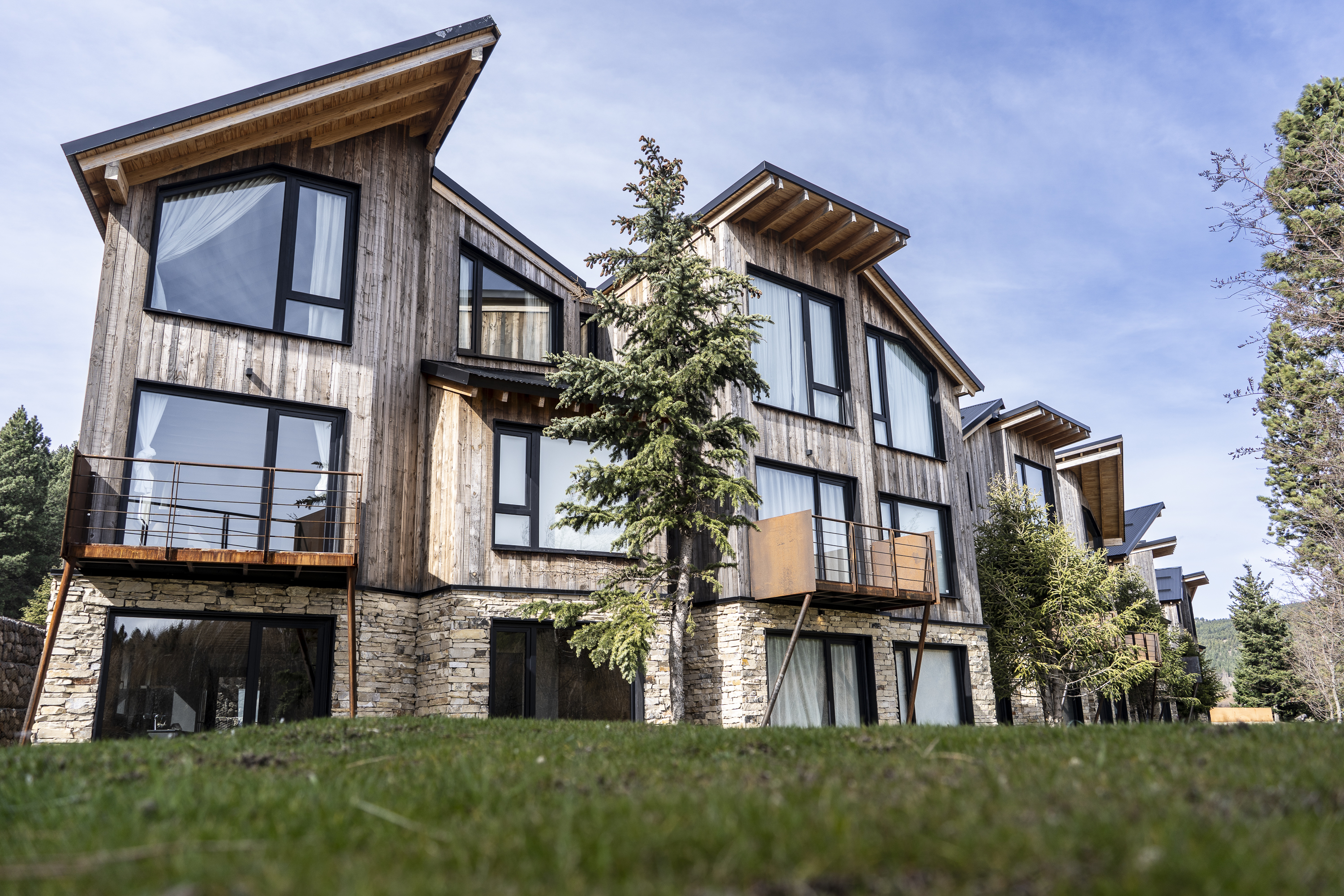 Construido con materiales nobles y típicos de la región, los departamentos se caracterizan por su cómoda distribución, amplias vistas al campo de golf y al cordón montañoso del Chapelco.