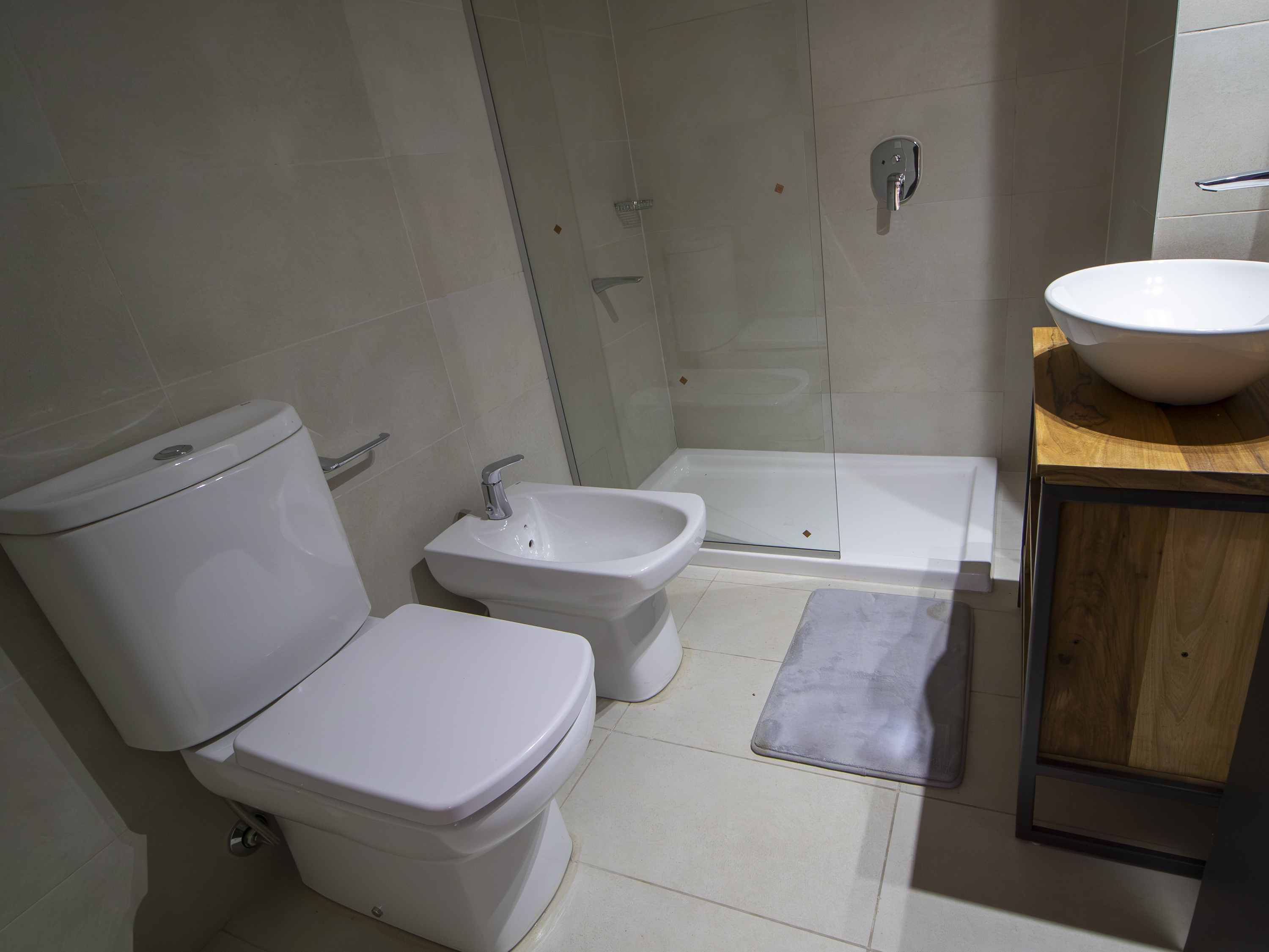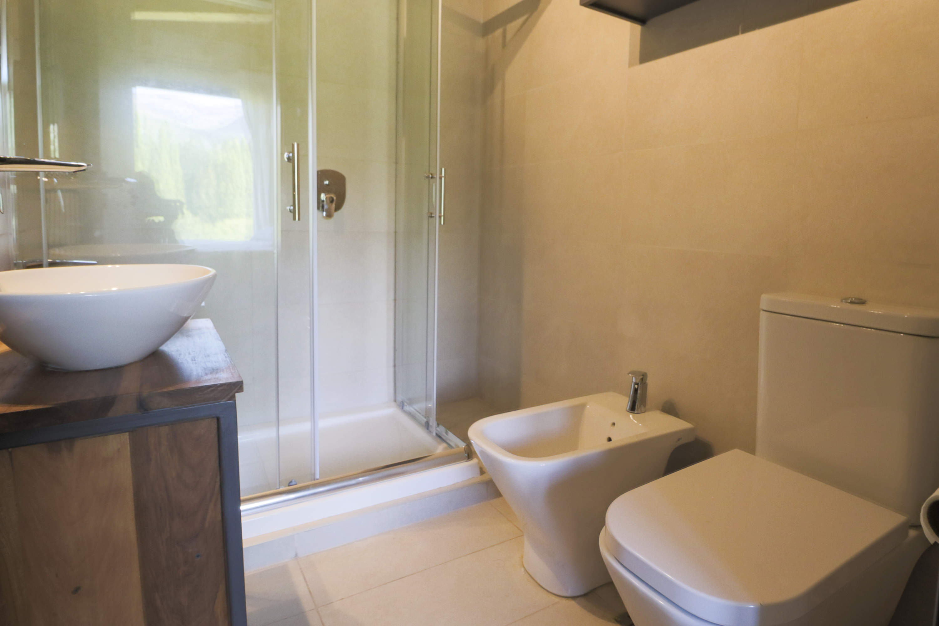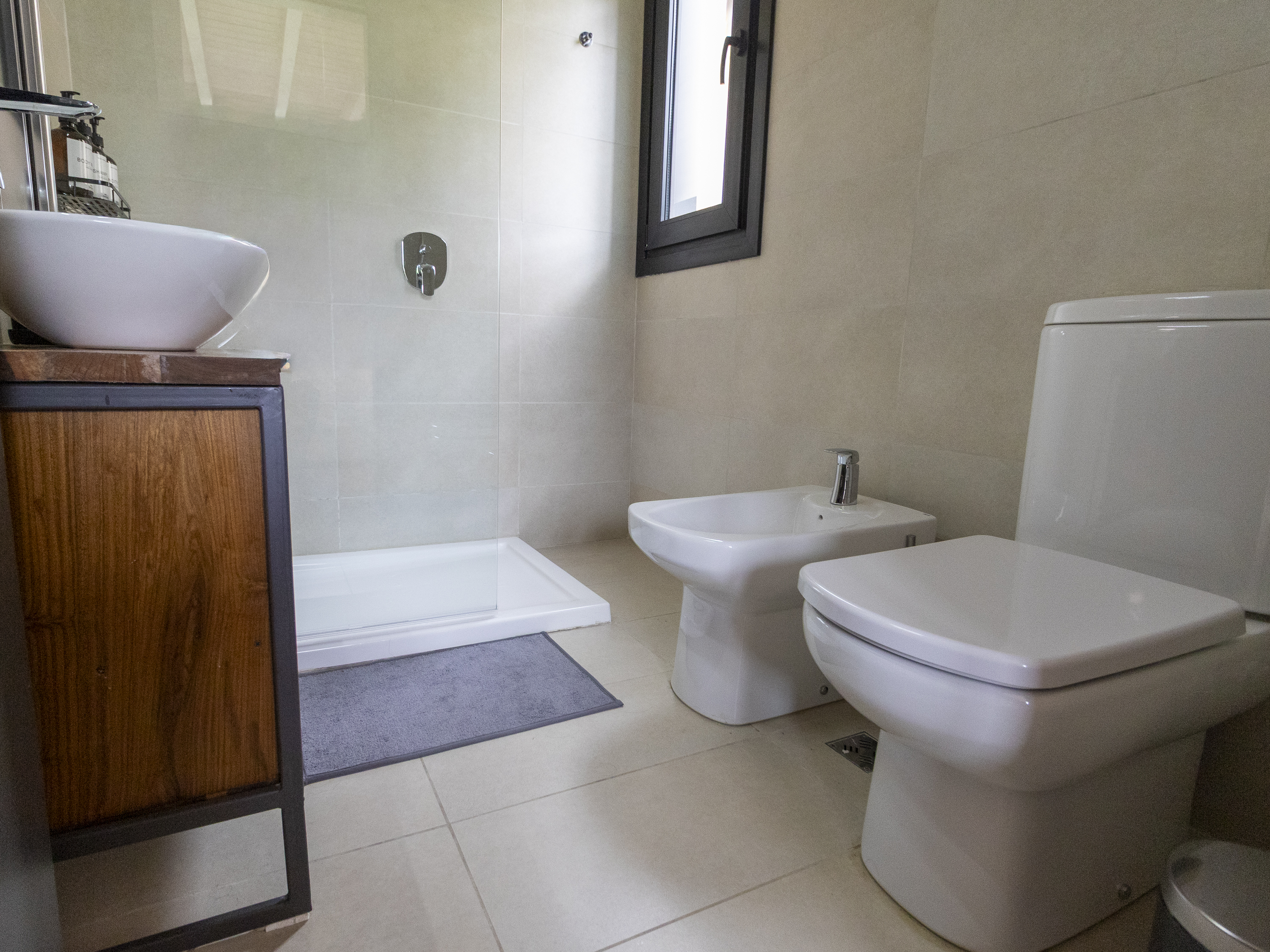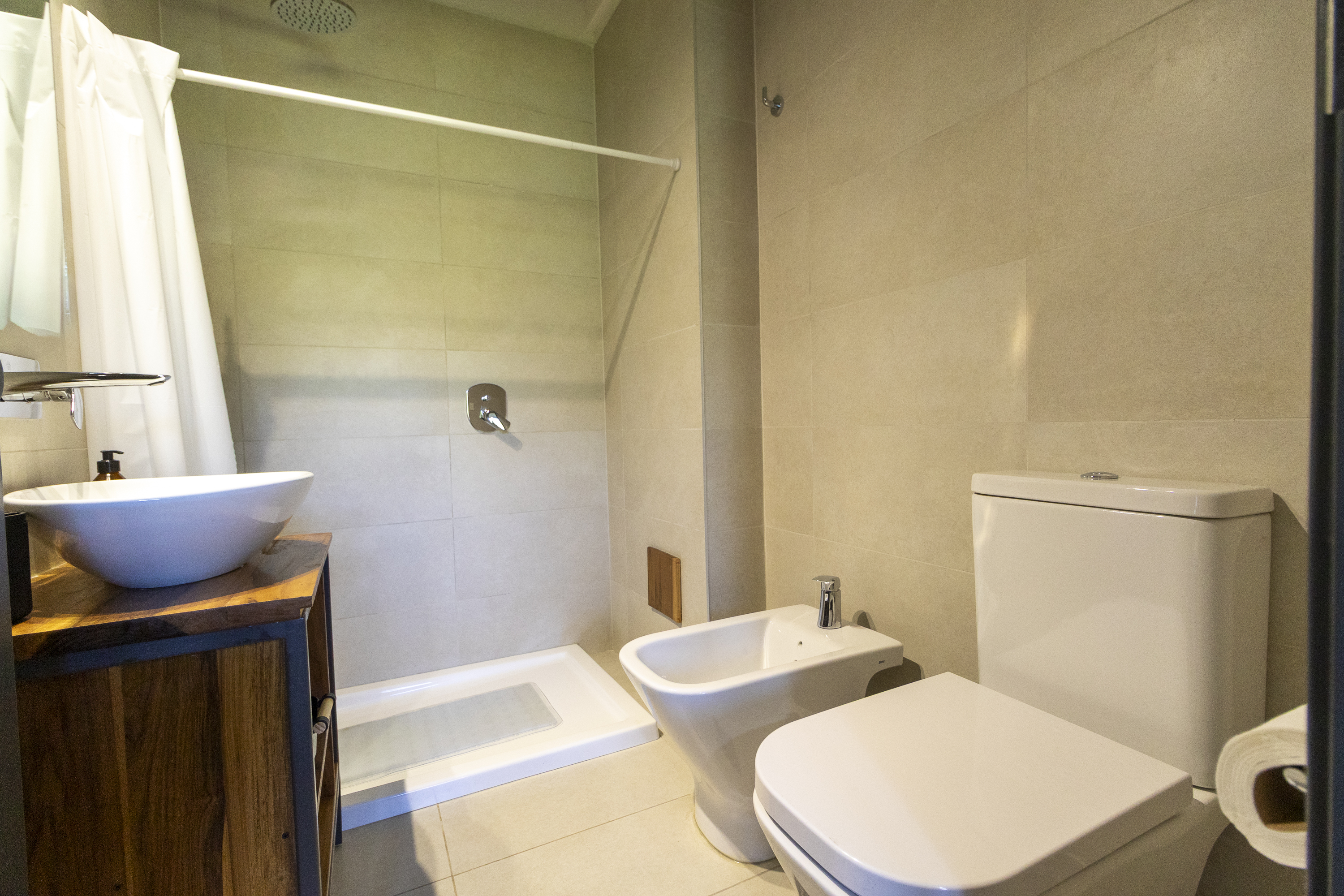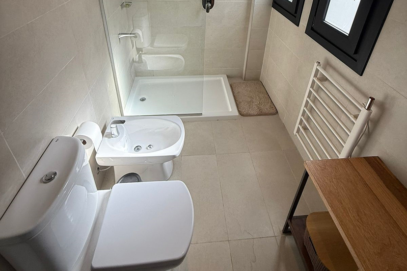 1 Baño completo con bidet y receptáculo.
