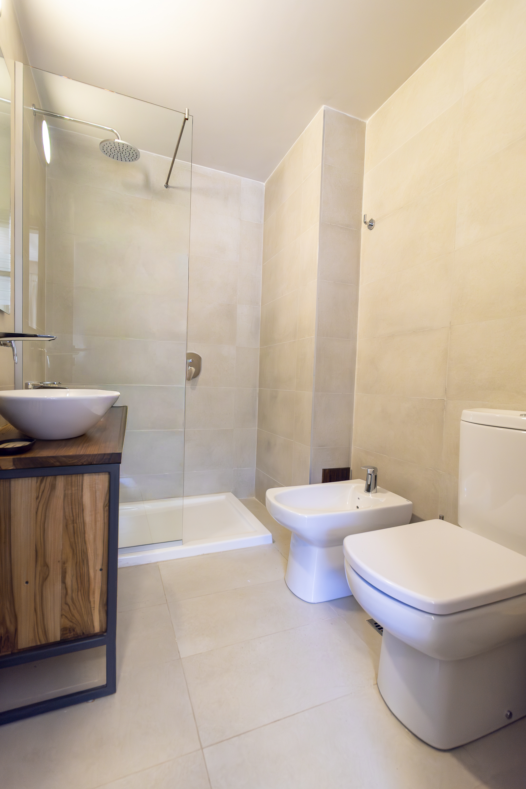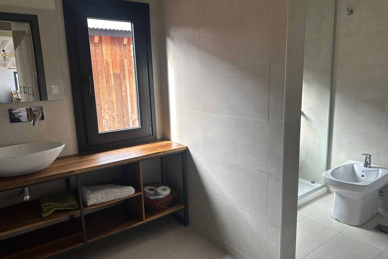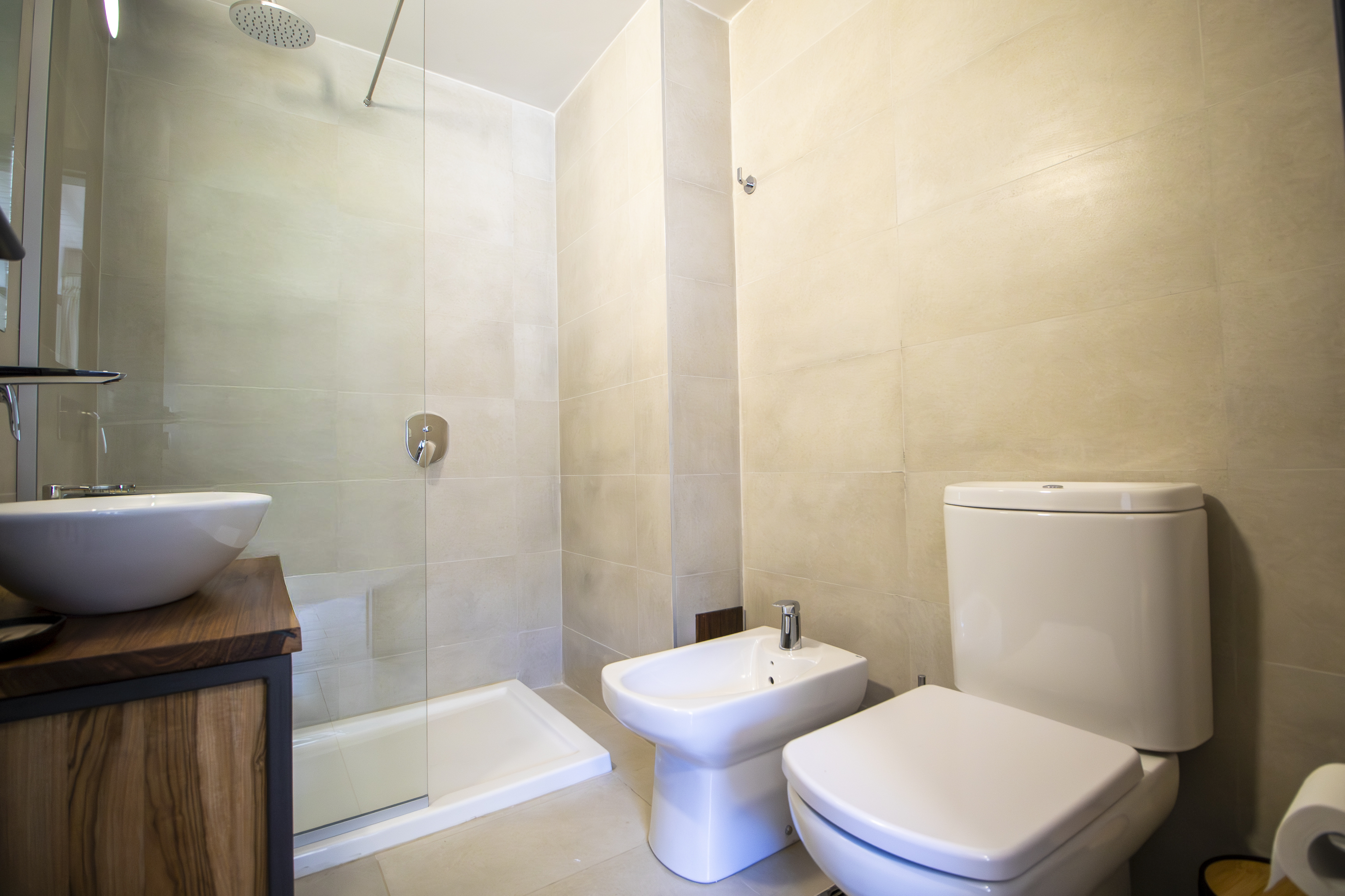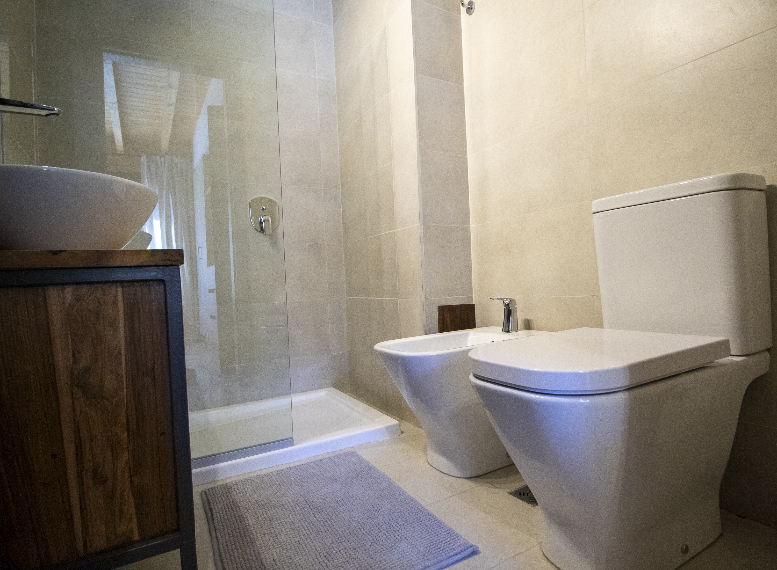 1 Baño completo con bidet y receptáculo.